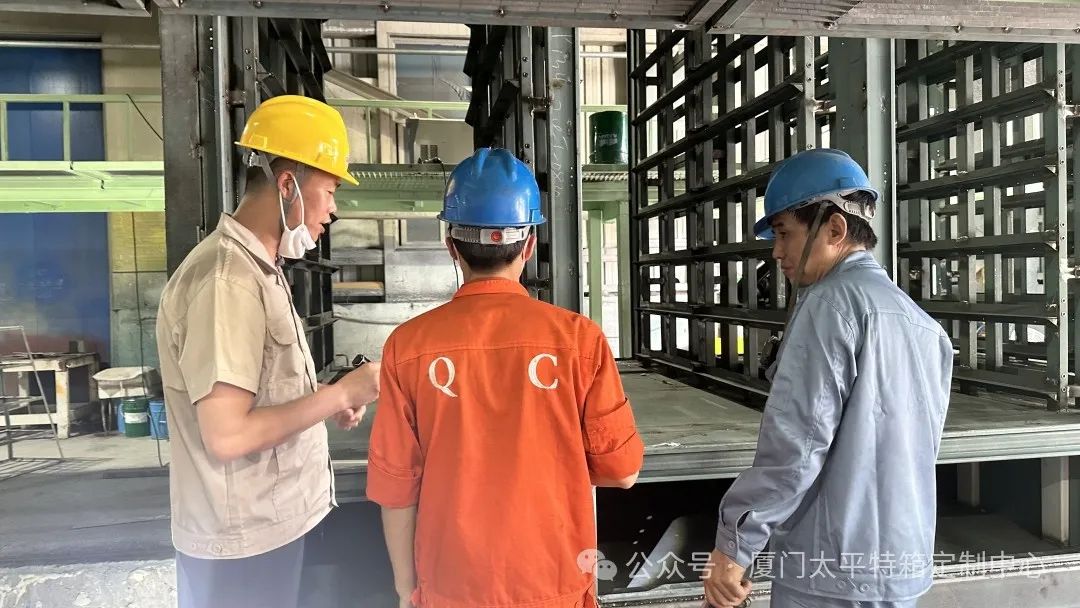 近期,廈門太平接到56臺液冷儲能箱的批量訂單,交期緊任務重,也是與客戶的首次合作,客戶非常重視此批生產,專門派人駐廠監造,以確保生產進度與質量的雙重保障。公司領導第一時間主持召開生產動員會,針對訂單的交付進行詳細部署并提出具體要求。從圖紙下發到首批儲能箱交付,僅有六天時間,期間要完成技術準備、生產安排、質量控制等一系列復雜工序。箱型的復雜和工序的繁瑣程度是前所未有的。各部門管理干部勇于擔當,敢于決策,快速解決了生產過程中的問題。生產一線員工具有高度的緊迫感,加班加點爭分奪秒,齊心協力擰成一股繩,想方設法確保訂單按時交付。